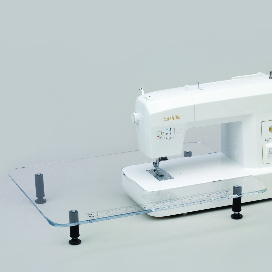 Instantly create a larger sewing surface with an extension table. These tables keep your fabric level, giving you better control when handling a variety of projects. Compatible with the Sashiko (BLQK) machine. Dimensions: 24 L x 18 W.