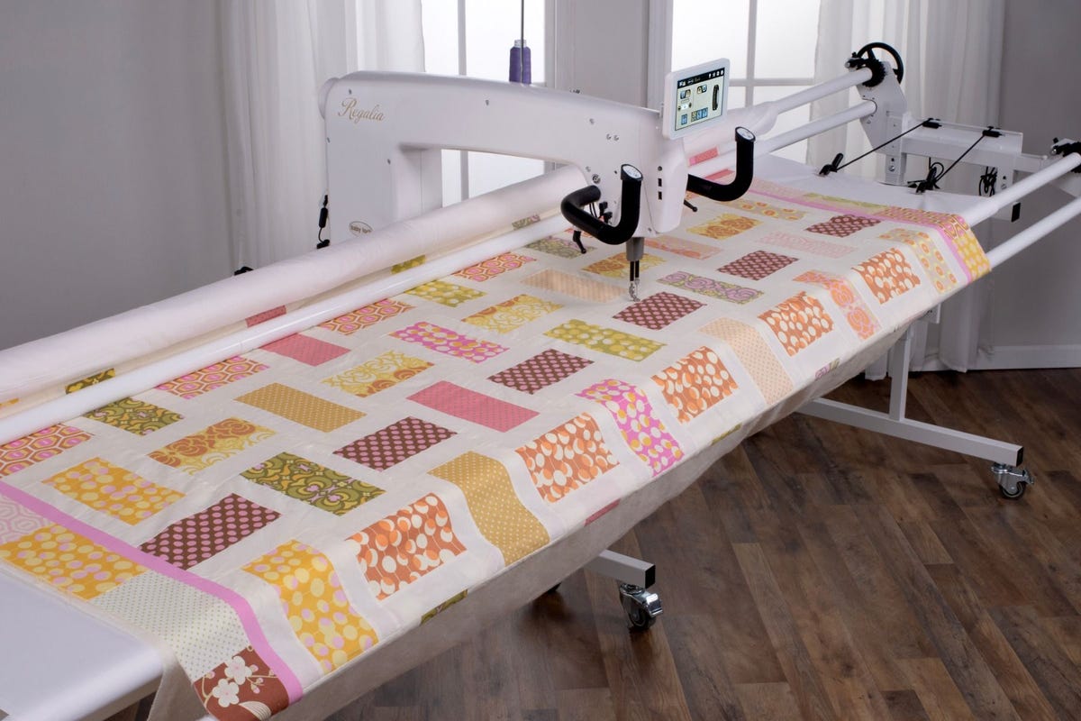 Baby Lock Regalia 20 Machine Carriage Maestro 10 Foot Frame. This Sales Kit ships with 9 boxes: BLRG20A Regalia machine, BLRG20B Regalia carriage, 7 frame boxes: BLMQFB1A (10` leader), (2) BLMQFB2, BLMQFB3, BLMQFB4, BLMQFB5, BLMQFB6 (2` section), The Maestro Frame assembly instructions included in Box 4, BLMQFB4.